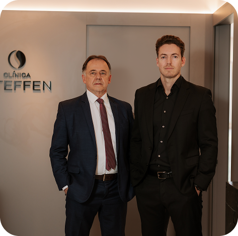 A Clínica Steffen é formada por dois cirurgiões que compartilham o mesmo sobrenome e a mesma exigência técnica — mas com trajetórias e estilos complementares.